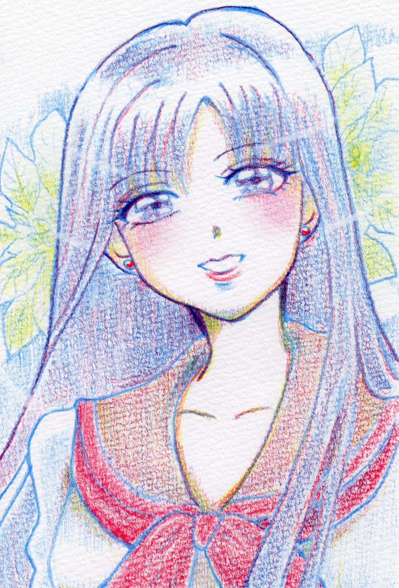 レイちゃん,というよりレイさま 赤青黄の三色の色鉛筆で #セラムンイラスト部