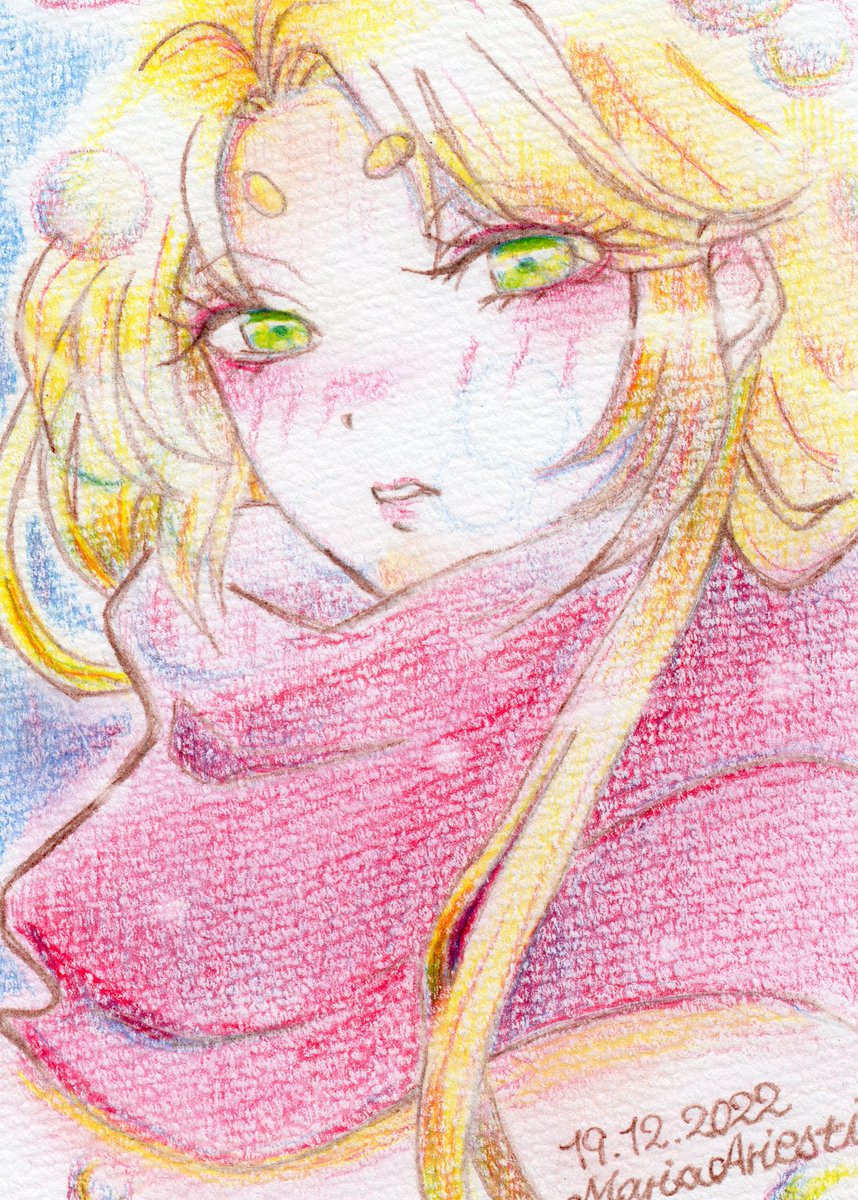 11 69 色鉛筆でプリンセス・セレニティ 赤青黄色の三色しばりです どうなることかと思いましたが、出来上がって嬉しい #セラムンイラスト部 22/12/26 19:13