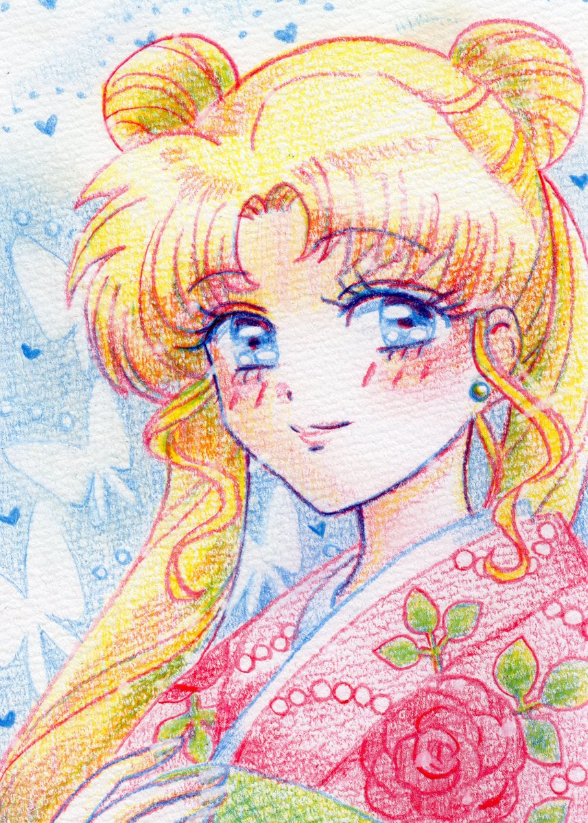 色鉛筆でプリンセス・セレニティ 赤青黄色の三色しばりです どうなることかと思いましたが、出来上がって嬉しい #セラムンイラスト部