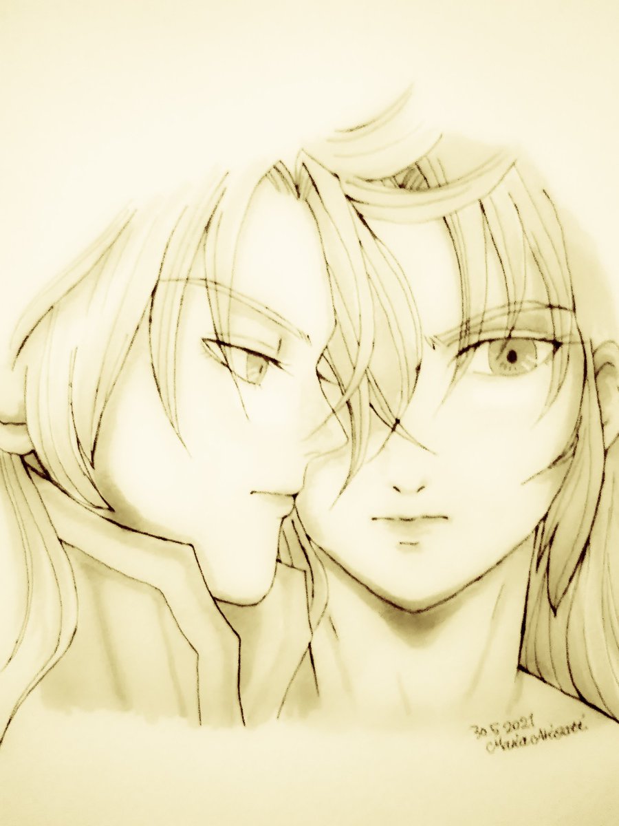 双子座月間に入っていたので過去絵を加工して再掲 色々未熟だわね、と思わざるを得ない双子です😅 美しく描きたい