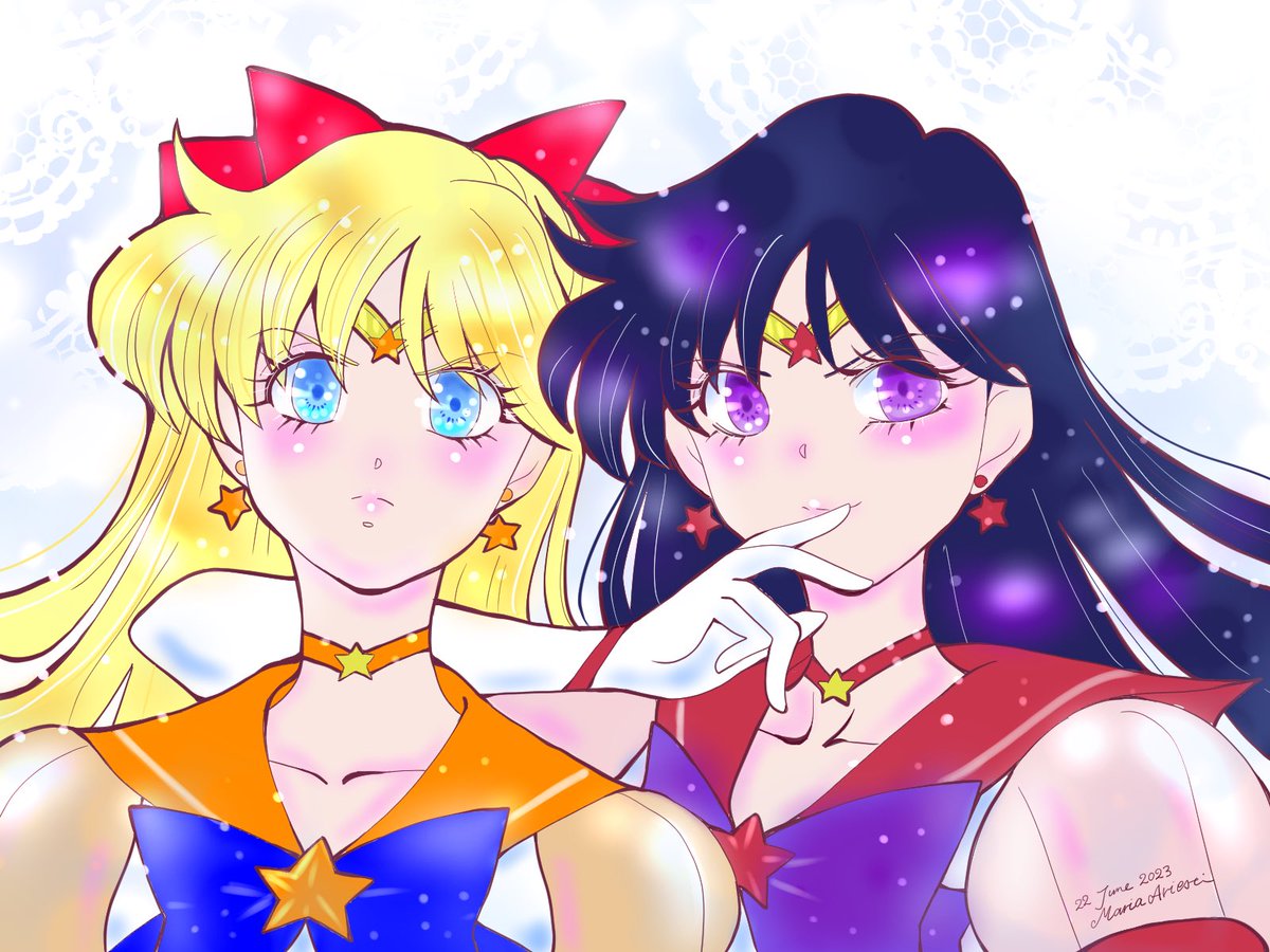 23 114 屋上の場面の構図でエターナルセーラーヴィーナスとエターナルセーラーマーズ #セラムンイラスト部 23/06/23 00:10