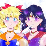 屋上の場面の構図でエターナルセーラーヴィーナスとエターナルセーラーマーズ #セラムンイラスト部