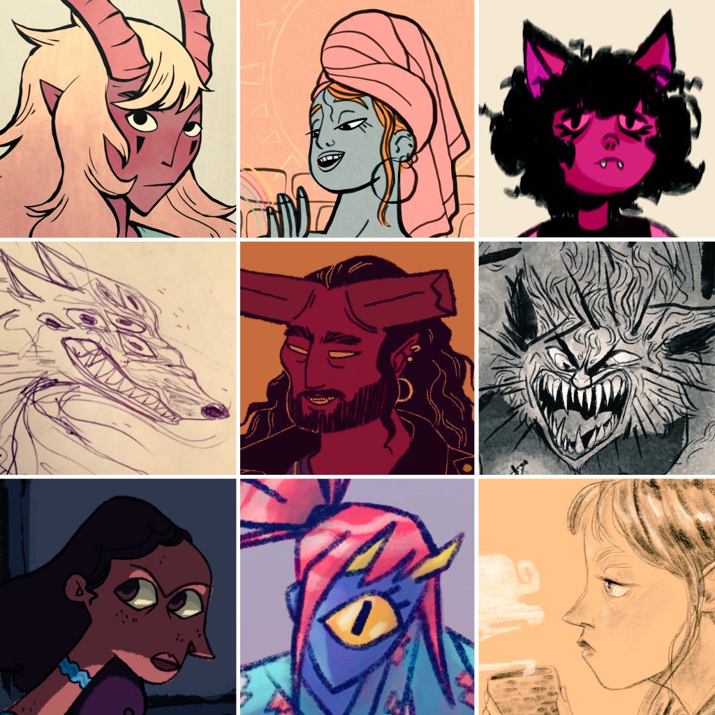 Some faces i made for myself or as gifts so far this year! Surprise, lots of dnd and fantasy creatures, huh. Some are wip that may never see the daylight more than this #faceyourart #faceyourart2020