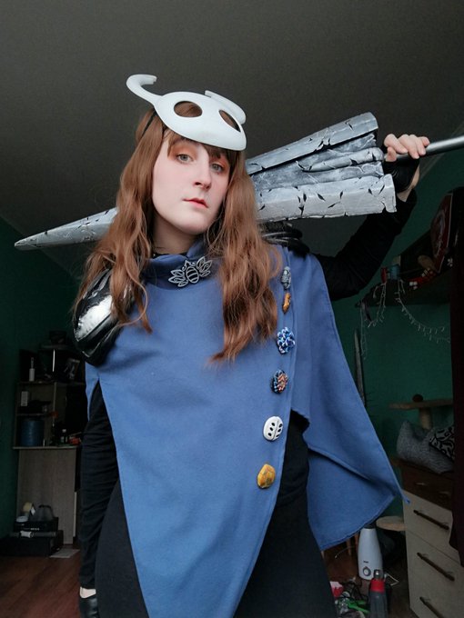 Вчера все же справилась с первой версией Маэстро Гримма, надеюсь, сегодня удастся разделаться с сониками и разбудить моего третьего Грезящего. Пожелать удачи и пожалеть в случае боли и страданий с 17.00 по Киеву можно здесь: twitch.tv/mariaburgess <3 #HollowKnight #cosplay