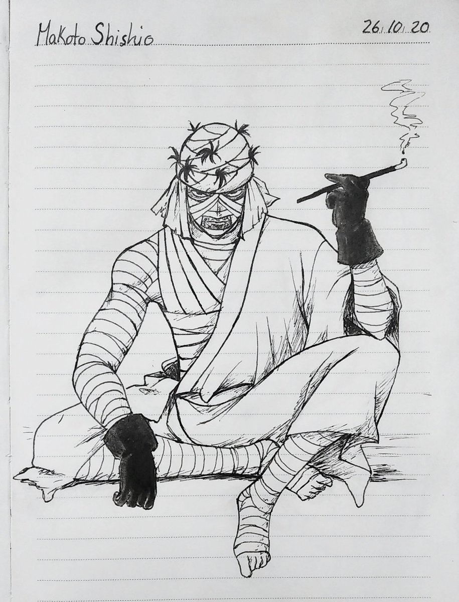 Drawing for the day 26 of #MyInkingIsStrongerThanYours is dedicated to the merciless swordsman Makoto Shishio. #Inking #TraditionalArt #Illustration #MakotoShishio #RurouniKenshin #Inktober
