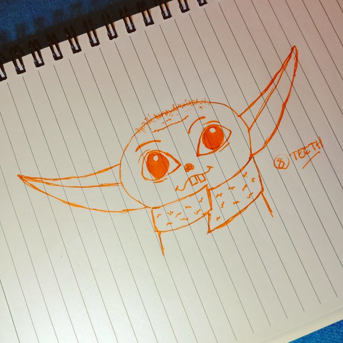 Day 8 of #inktober... Teeth Will season two of The Mandolorian include baby teeth for baby Yoda??? #inktober2020 #Drawing #pendrawing #basicart #beginner #dontlook #teeth #themandolorian #thechild #babyyoda #thingsidontwanttosee #doesyodahaveteeth