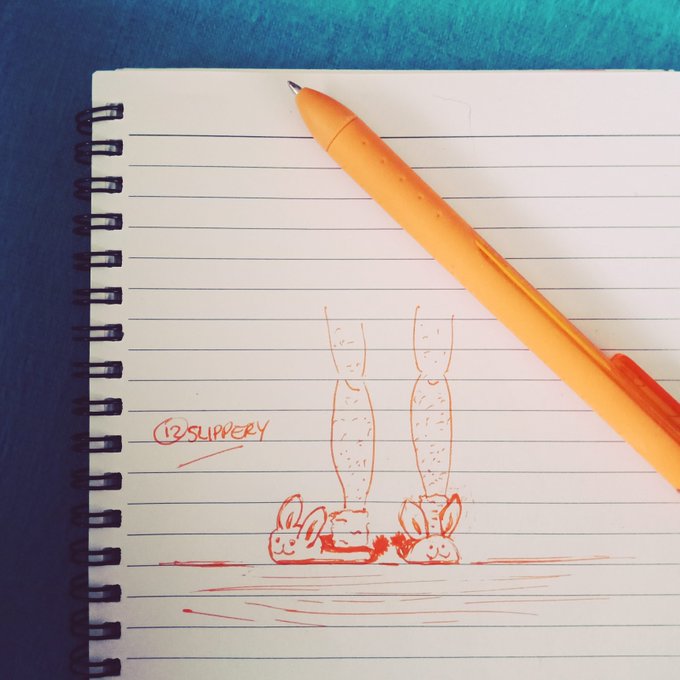 Day 12 of #inktober... Slippery #inktober2020 #Drawing #pendrawing #basicart #beginner #dontlook #sketch #doodle #slippery #slippers #bunnyslippers #hairylegs