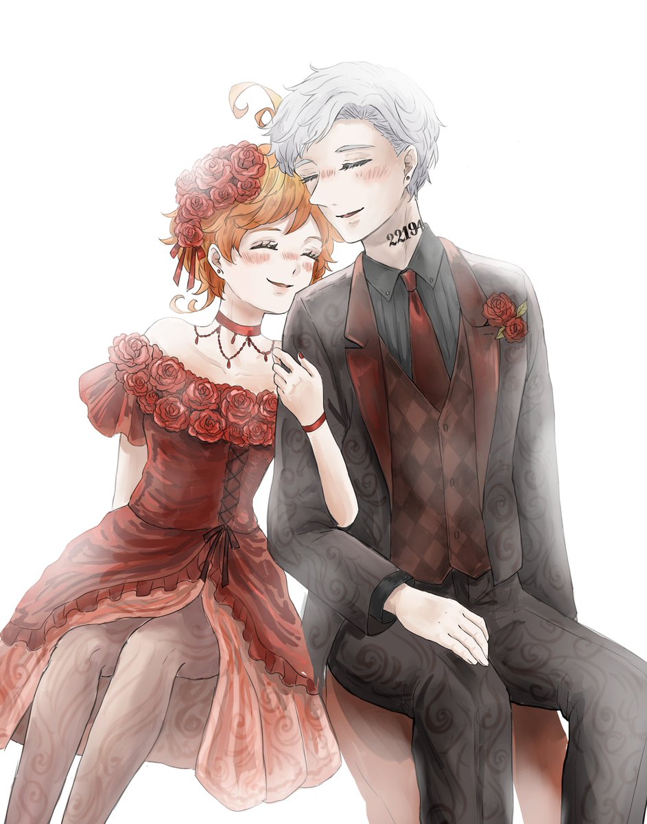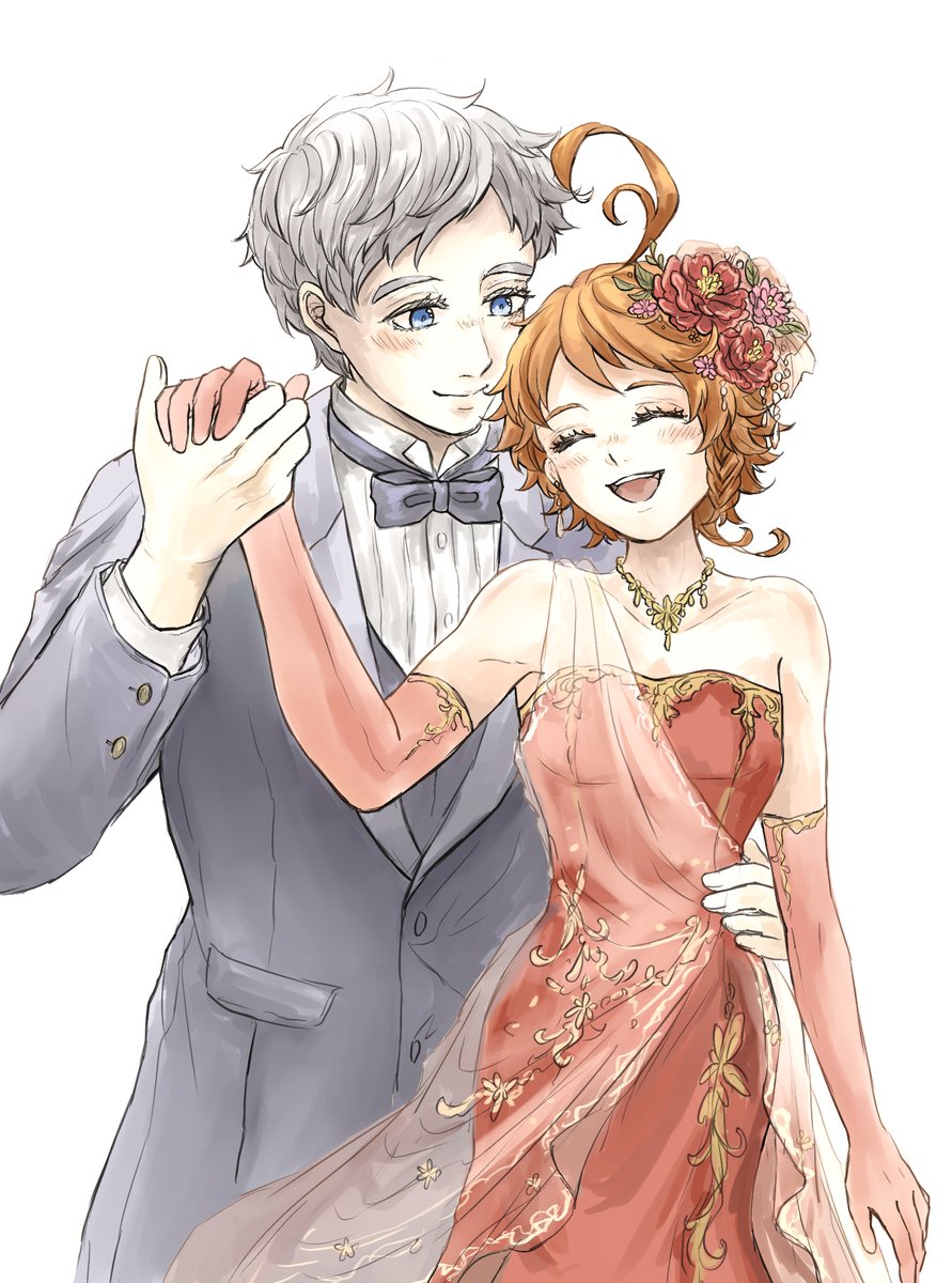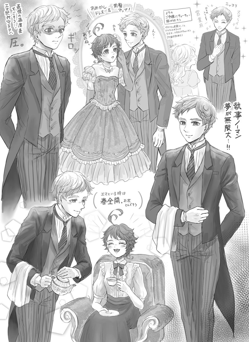 おたのんさん(@OTANO35542251) の執事ノマ×お嬢様エマの素敵小説があまりにも好きで触発されて描きました🙌燕尾服ノマ&ドレスエマちゃんはいいぞ…!(布教) 〇妄想が大暴走してるので小説のネタバレはありません