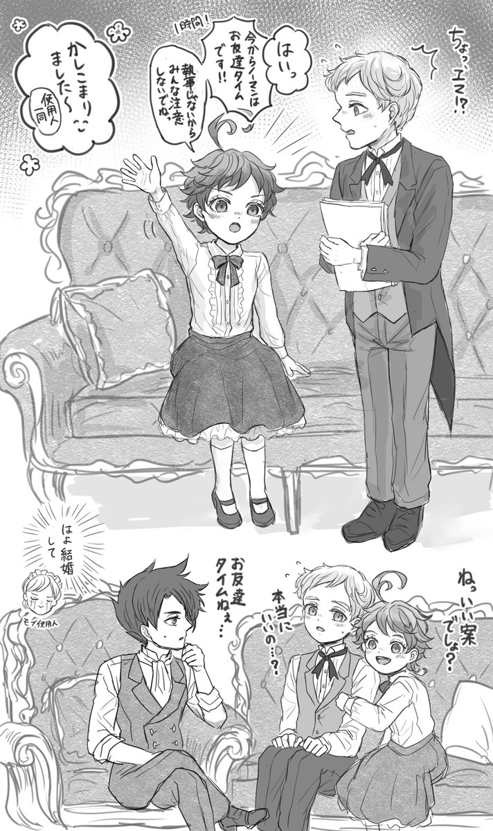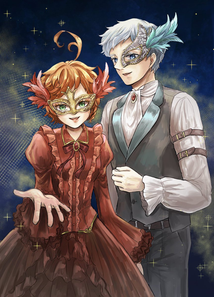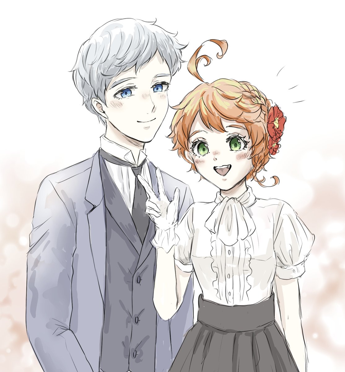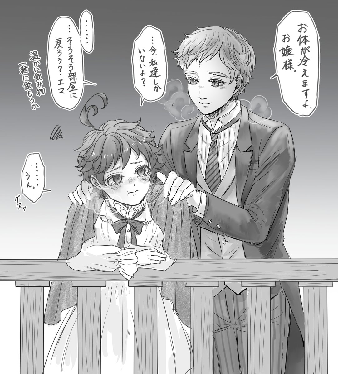 おたのんさん(@OTANO35542251) の執事ノマ×お嬢様エマの素敵小説があまりにも好きで触発されて描きました🙌燕尾服ノマ&ドレスエマちゃんはいいぞ…!(布教) 〇妄想が大暴走してるので小説のネタバレはありません
