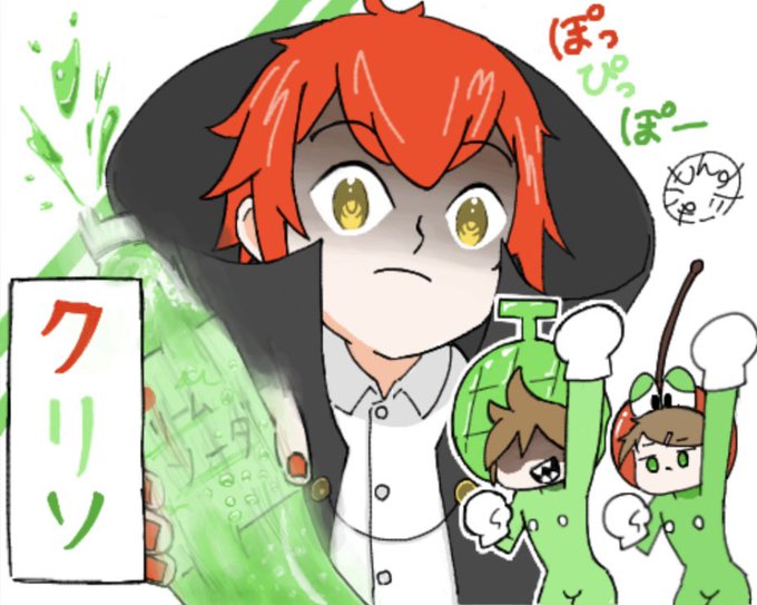 クリソでぽっぴっぽー描いてきました!むずい!!でもネタ枠楽しかった!! ネタ枠なのでともさんのマントの襟を大きくすることにこだわりました。 #クリームソーダWIN #赤pic #緑色さんご自由にどうぞ #wrwrd_FA