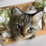 4 13 オーダー制作 キジトラの女の子は、バラとリボン額に入りました❣️ ラメリボンは、目の色と同じです😽 #羊毛フェルト #キジトラ 23/02/26 20:29