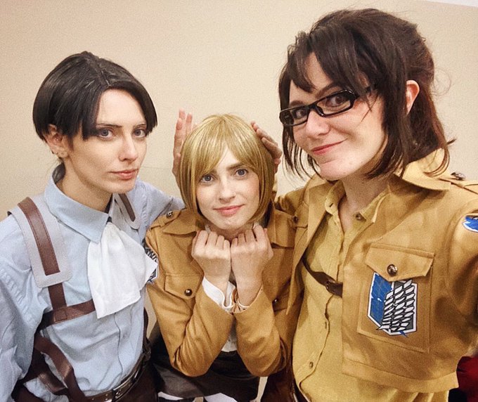 Lots of sasageyo at Campinas anime fest 💚 #cosplay #ShingekiNoKyojin @bananamisart - Levi @kaokki - Armin Me as Hange