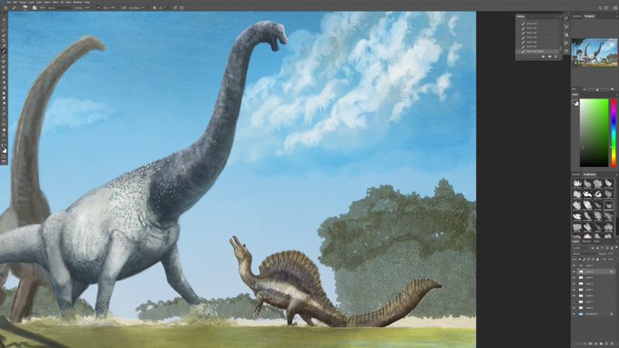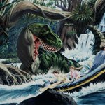 I'm up to my eyes in #paleoart commissions at the moment but can't share any of the results for #FossilFriday. Here's a take on the K/Pg event from 2020 to keep things ticking over. That's not a good place to swim, Prognathodon.