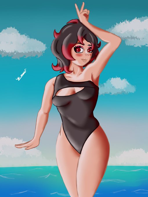 Aquí traigo otro dibujo de #myOC Ellie, ahora con un bikini más apegado a sus gustos jaja. #bikini #OC #draw #dibujodigital #digitalart #イラスト #オリキャラ