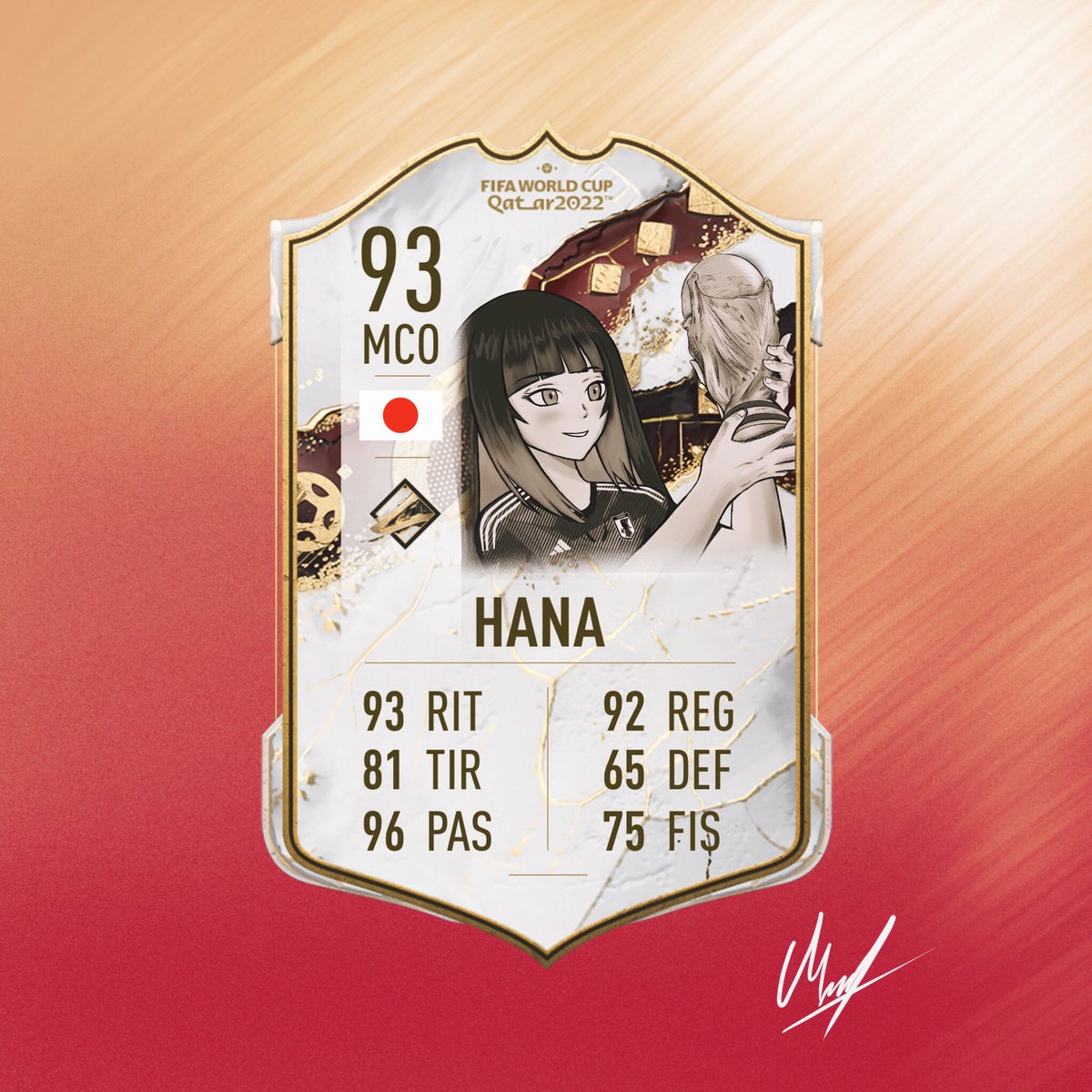 Un fanart de ilustraciรณn para @HanaYomeguri mรกs una carta de leyenda campeona del mundo por cada alegrรญas que nos das cada segundo โค๏ธ๐ฏ๐ต Espero te guste โจโ๐ผ #hanapics #fanart #FIFAWorldCupQatar2022 #digitalart #illustration