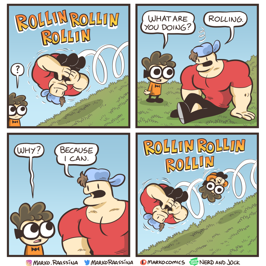 New Nerd and Jock episode is out, just for my birthday! Rolling continues. You can read it today either on Patreon or Webtoons: webtoons.com/en/challenge/n…