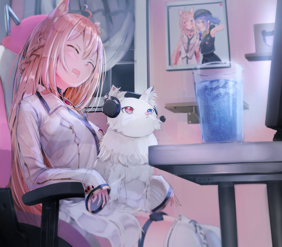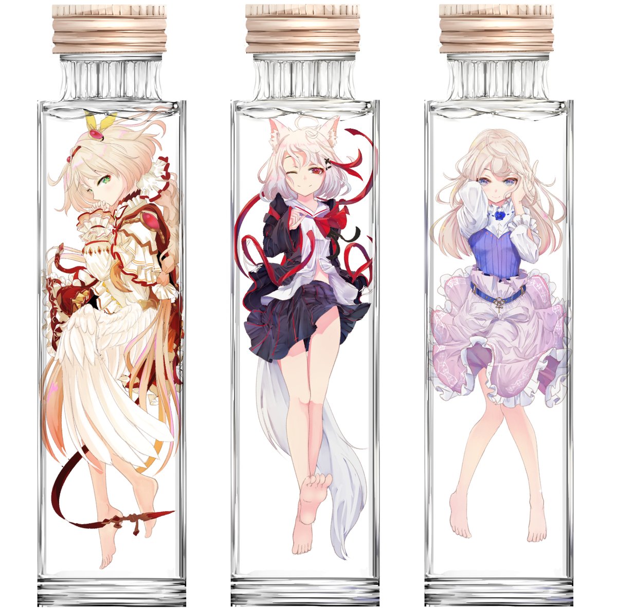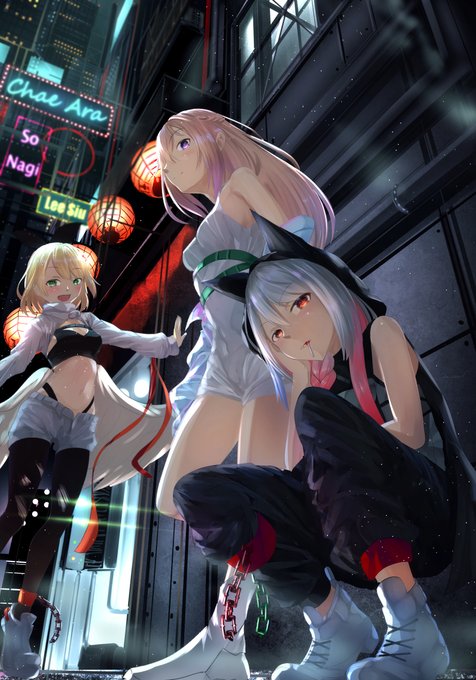 ツインテールを持ち上げるお嬢様ナギ様 VS ツインテールに手が届かない魔法少女セラちゃん VS キャピるJKハユン君 VS それを見て悶える俺 #HaYun_Art #nagiart #Sera_art