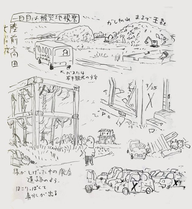 2011年7月 会社が募った被災地へのボランティアチームに参加 そのときの覚え描きです。