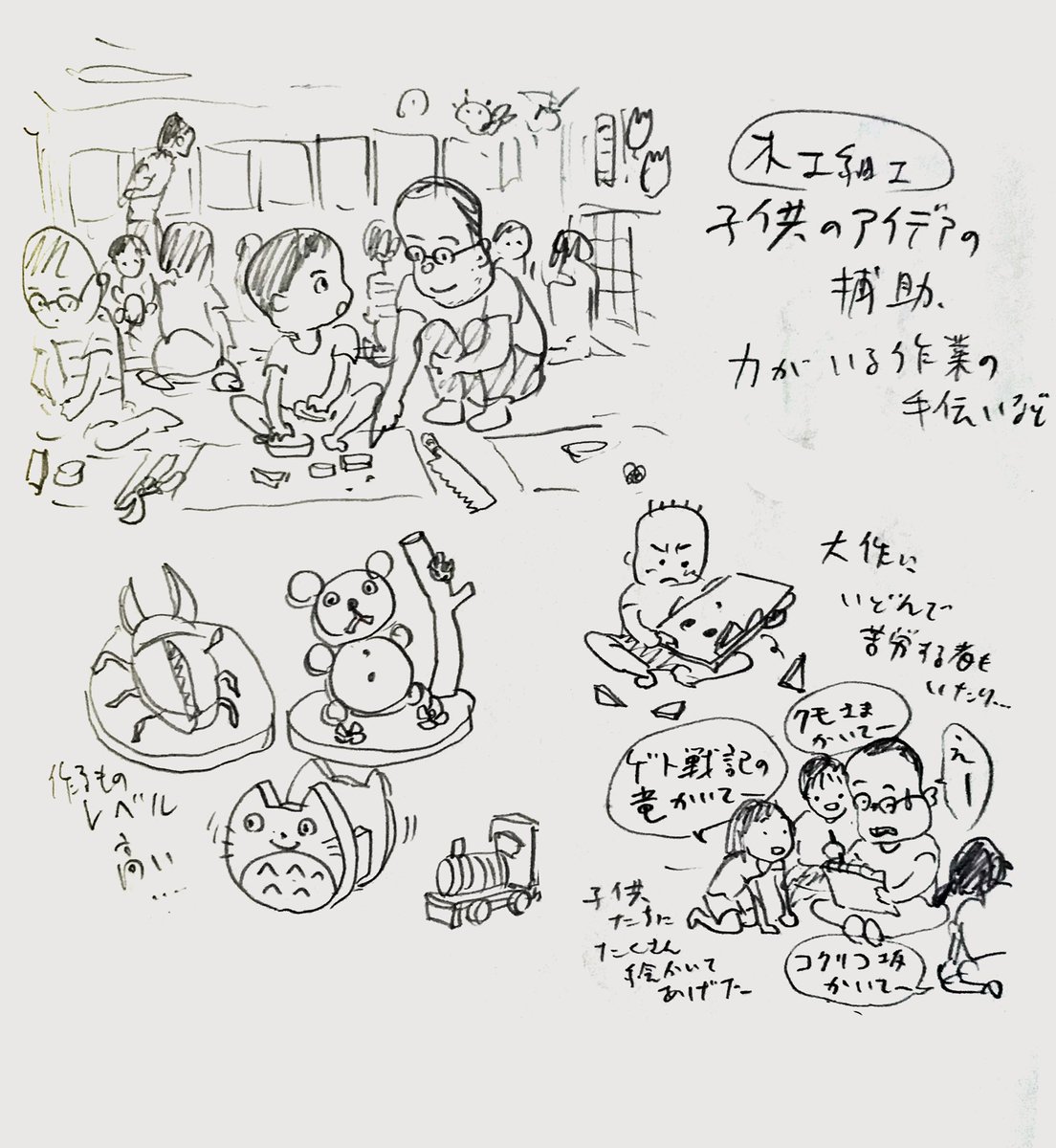仮設住宅への生活必需品などの搬入をしたり、子供たちと触れあったりしました。 一緒にスポーツをする組もありましたが、僕は苦手なので木工細工を作る組に参加。 子供たちのリクエストに応えて絵を描いたりしましたが、題材が容赦なくてタジタジでした…