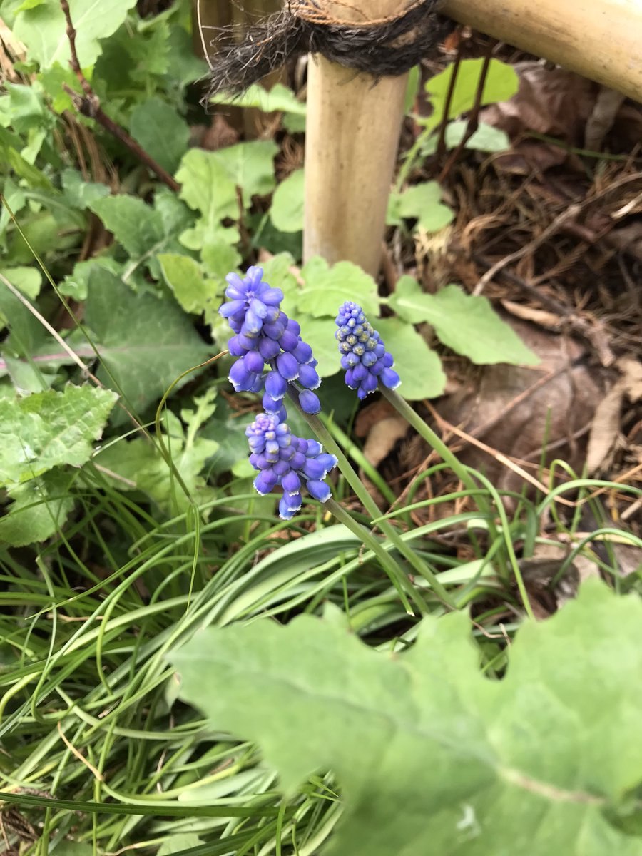 ユキヤナギはもう散り始めてる。この間咲いたと思ってたのにはかないな… 散る頃には花の中心が赤く染まって可愛らしくなります。絵本でも描いてみました。 魔女の花のモデルとなったムスカリも見つけました。