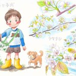 39 497 ヤマナシはこの絵ではピンクっぽく描いてますが、緑色っぽく描いてみた。花びらは本物はもう少しお椀状だったな… 絵本は虫たちが主役なので男の子の顔は見せないという選択もありましたが、やはり見えてた方がうれしいかなと。 ただ、水たまりに映った顔だったのでなかなか難しかった… 22/04/16 16:53