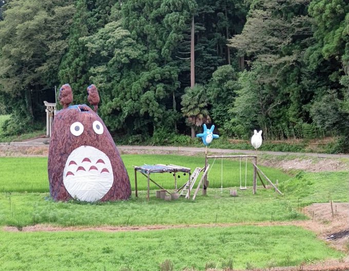 石川県の田園地帯にポツンといる何かに似たやつ。🌱 何年もリニューアルされながら地元の子供に愛されてるようです。 高さ7メートルとか、結構な迫力!