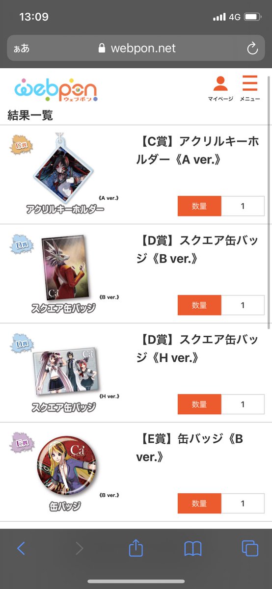 #シーエウェブポン 10回回した結果〜 B賞欲しかったけど缶バッジいっぱい回収したしいいか٩(*´︶`*)۶
