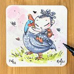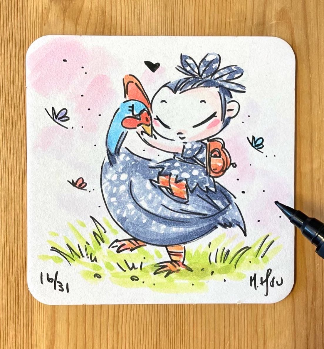 Birds of a feather 🪶👧🏻 16/31 - Fowl / #Inktober2022 #inktober #rubygloominktober #spooktober #mabsdrawlloweenclub #ink #watercolor #creepyart #fowl #guineafowl