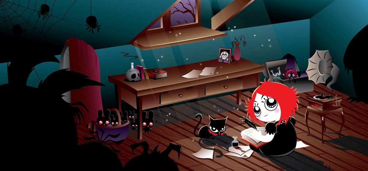 And down we go~ 🐈⬛ Halloween art sale on martinhsu.bigcartel.com/products 🎃! #RubyGloom #RubyGloomInktober #Inktober2022