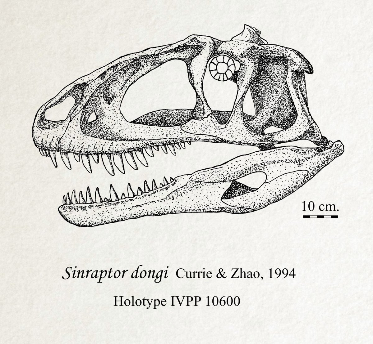 Skull's bones in lateral view of the Sinraptor dongi. reffering to illustration by Donna L. Sloan. #paleoart #dinosaurs #SciArt