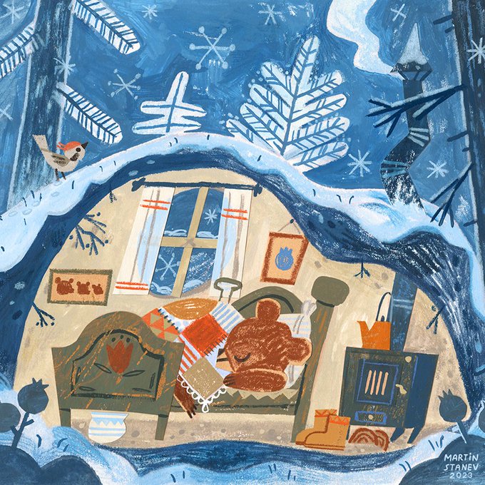 Hi #KidLitArtPostcard! Here's a cosy little bear alone at home 🐻 • martinstanev.com • instagram.com/martinstanevil… • Represented by InklingIllustration.com
