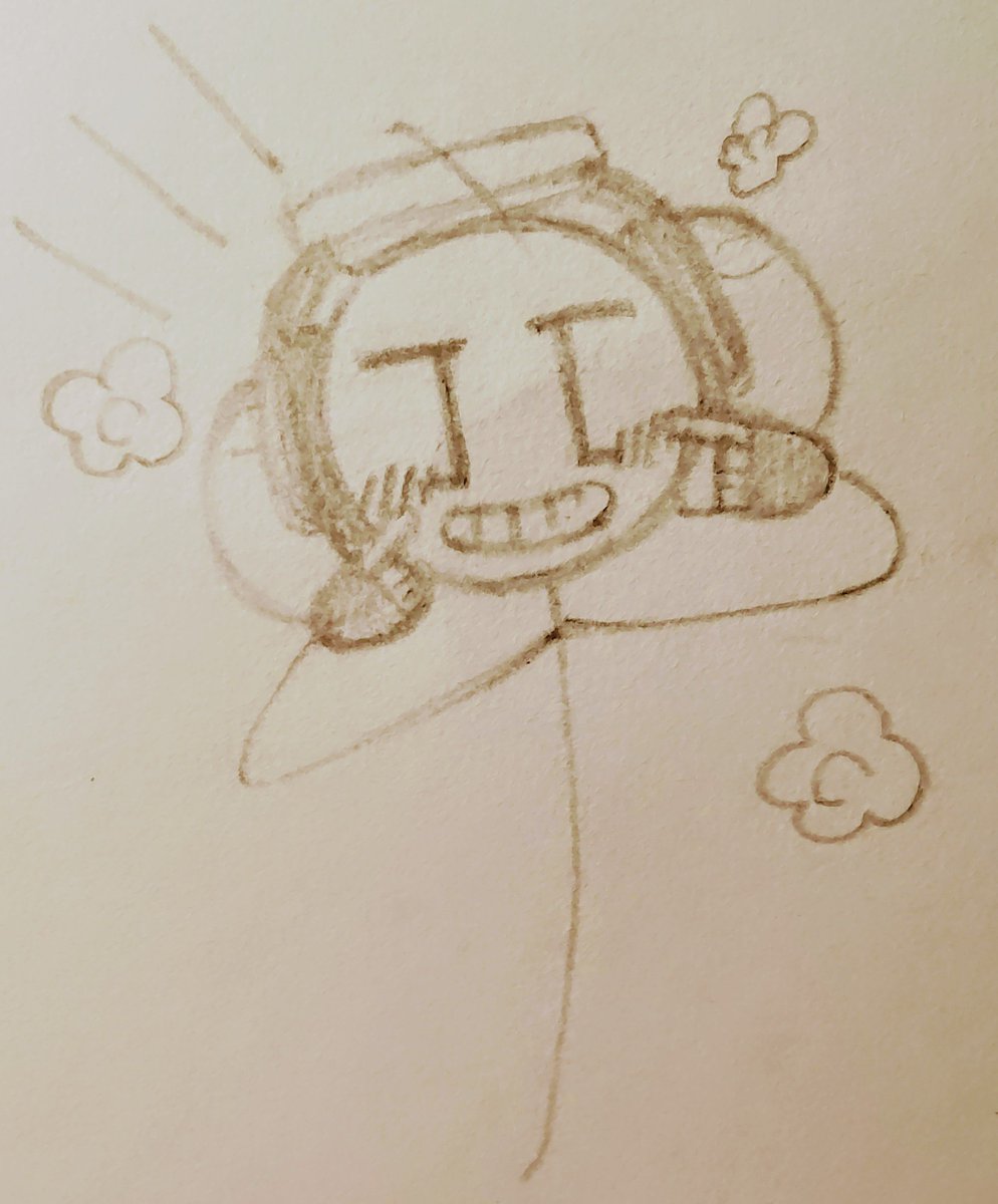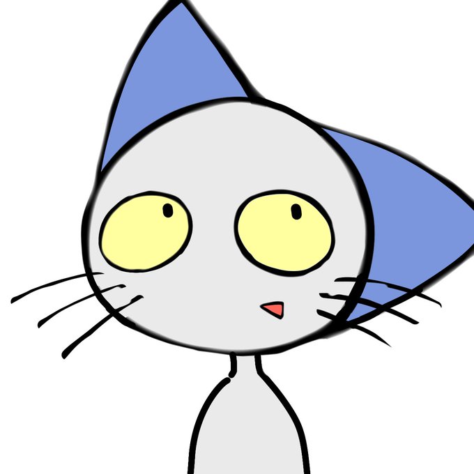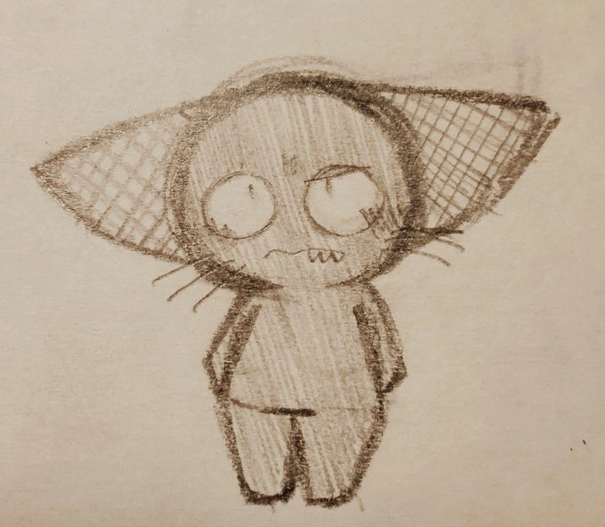 筆と消で描いたよ 耳(角)が横から生えてるね #ねこのティーチくん