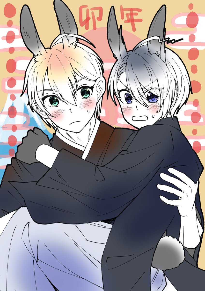 #くにちょぎワンドロぷち お題:「晴れ姿」(オーバー+5分) うさ耳注意。主命でうさ耳袴での記念撮影を命じられるくにちょ…の図みたいな。一応姫抱きです。 「確かに『”伯仲”なんだからもうちょっと仲良さげに映れ』とは言われたが、そこまでやれとは言われていない!!」
