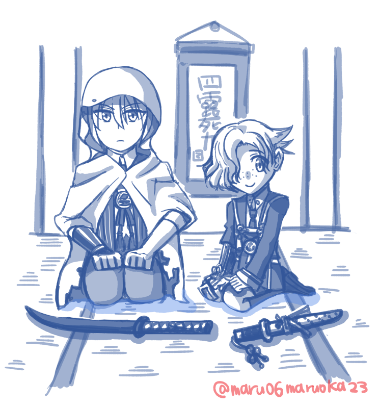 #初期刀と初鍛刀が同じ審神者さんを探す まんばちゃんとごこちゃんです! 顕現直後はこじらせ+おどおどのほっとけないコンビでしたが修行を経てすっかり頼もしくなったね…!2枚目は3年弱前に審神者になったばかりの時作の初描き二振り……