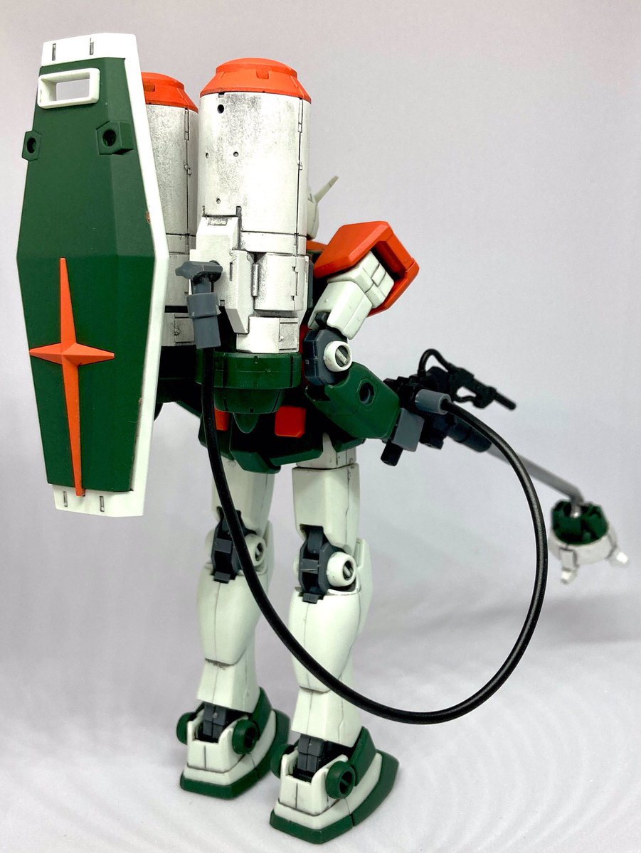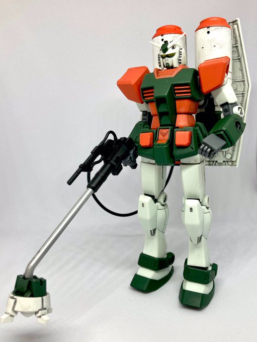 #今月作ったプラモ晒そうぜ 完成度はジオング位ですが「HGUC144/1除草剤散布仕様RX-78-2ガンダム」一応完成とします😆除草剤ラウ◯ド某をイメージしたカラーリング。ちょっと背負わせ過ぎ😅?ガンダムが人の代わりに除草してくれたらなあ…の発想です😊 #ガンプラはどんな自由な発想で作ってもいいんだ