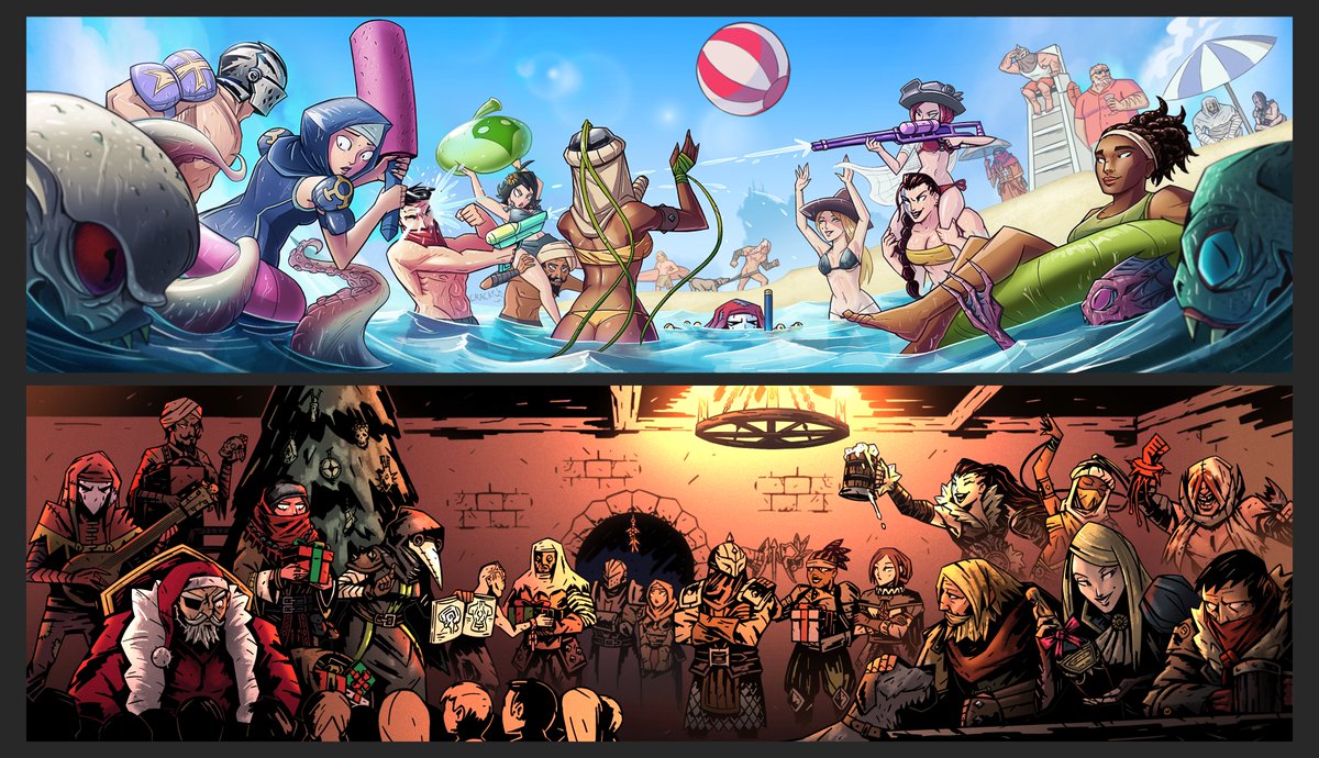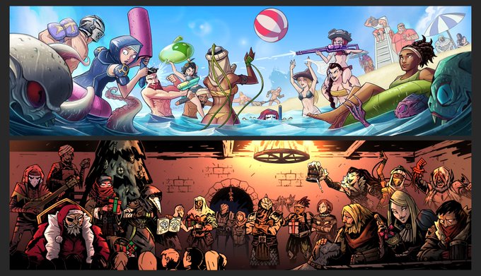 QRT with a cool and warm piece of art(thanks to cyn for the tag!) I don't have many colored pieces, so here's uber old fan art. I think it's funny that summer's got the cooler colors and winter's got the warmer colors 😁 Open invitation to QRT, show me your cool/warm art! twitter.com/cynthplop/stat…