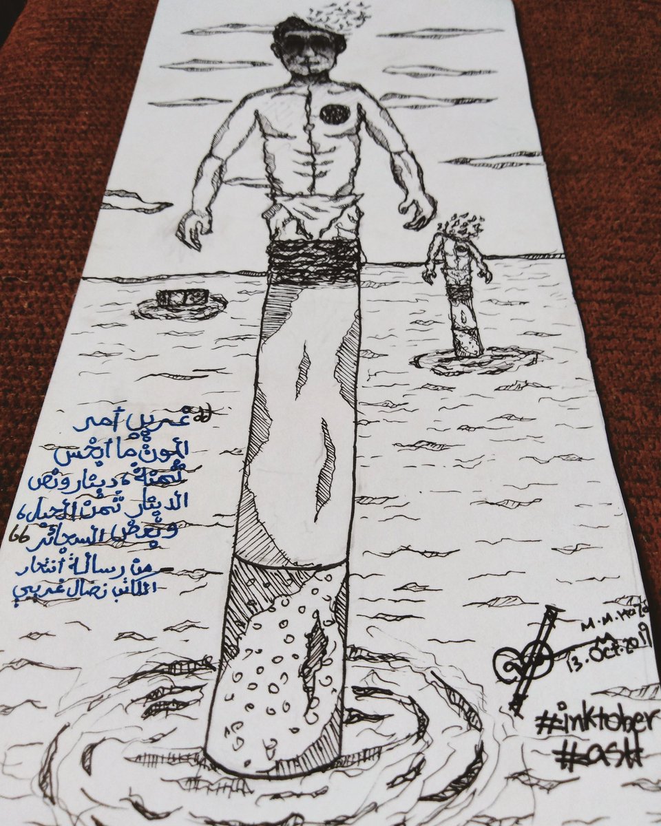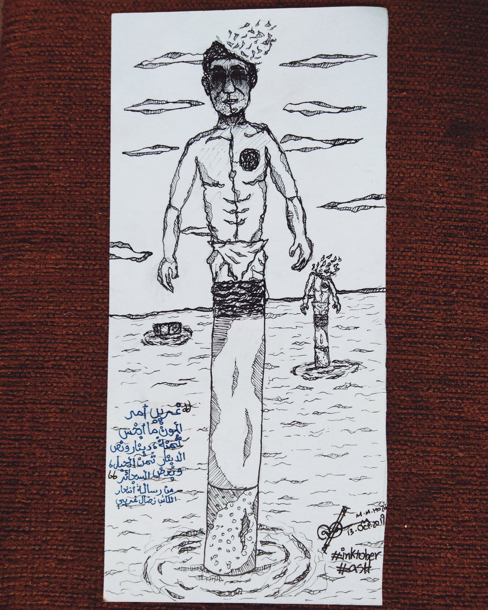 #inktober2019 #inktobersudan #inktober Day (13): #ash "أنا الآن لا شيء، تفصلني خطوة عن اللاشيء، أو فلنقل قفزة، غريب أمر الموت ما أبخس ثمنه، دينار ونصف الدينار ثمن الحبل، وبعض السجائر" - من رسالة انتحار الكاتب التونسي نضال غريبي