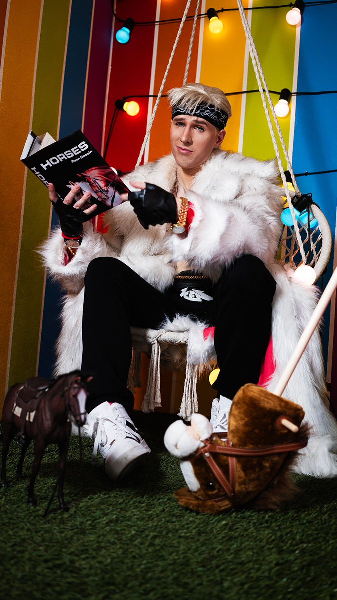 Oh, hi Barbie...I was just reading a book 🐴 📸 Yumik.raw #Barbie #BarbieTheMovie #KenCosplay #kenough