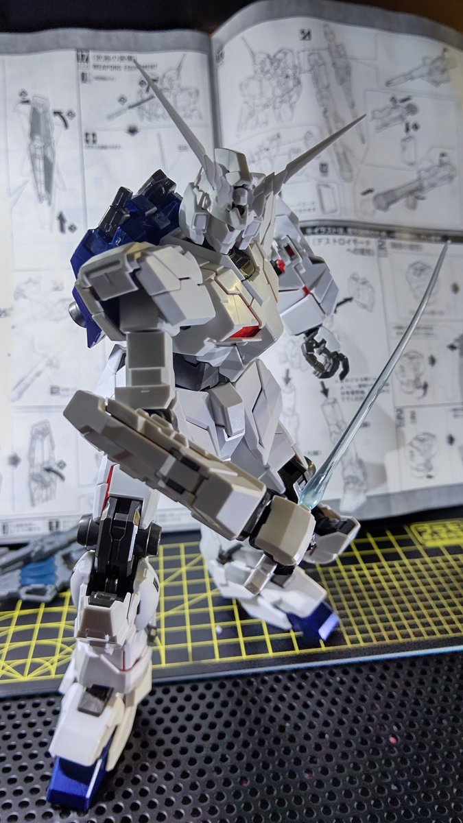 パチ組み終わったMGユニコーンガンダムのポージングを色々模索している50のオッサンの姿を想像して下さい🤣💥 #ガンプラ好きな人たちと繋がりたい #ガンプラの画像貼るとRTされると聞いて #ユニコーンガンダム #ガンプラ