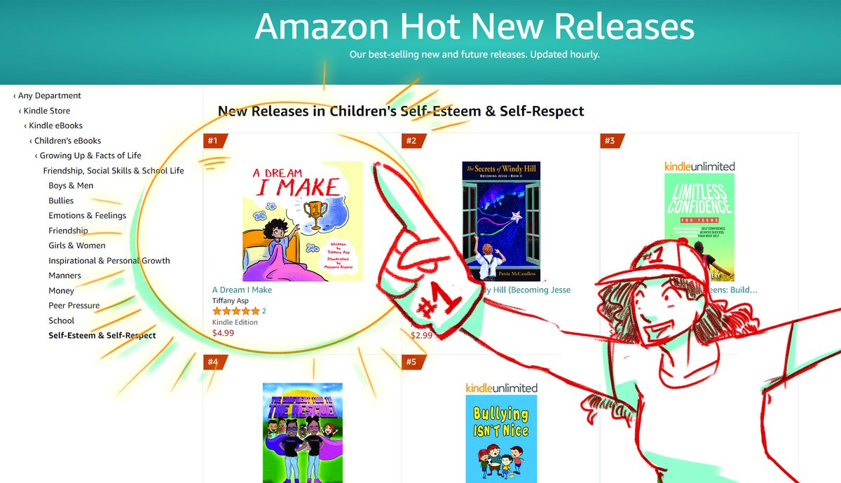 I'm excited to share that "A Dream I Make," which was illustrated by myself and written by Tiffany Asp, made it to #1 in New Releases for Amazon Kindle's Children's books on Self-Esteem and Self-Respect! @AmazonKindle #CHILDRENSBOOK #illustration
