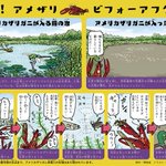 アメリカザリガニの害、世紀末モヒカンみたいなノリのアメリカザリガニがコミカルに解説してるページが環境省にあってわかりやすい ヒャッハー!🦞 恨むなら人間を恨みなー!🦞 env.go.jp/nature/amezari…