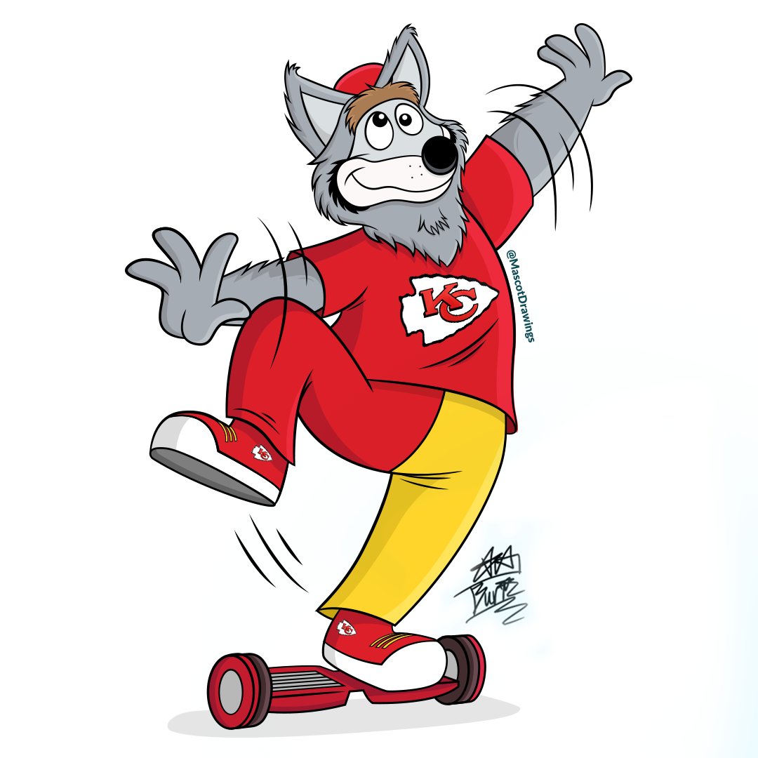 Mascotober 🎨 DAY 24 - DIZZY 🎨 I know @kcwolf has a hoverboard, but I'm not sure if he's ever stable on it @Chiefs #Inktober #KansasCityChiefs