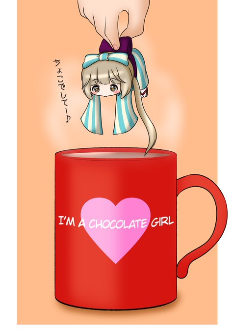 手乗りよしのんとチョコレートドリンク #依田芳乃 #バレンタインイラスト