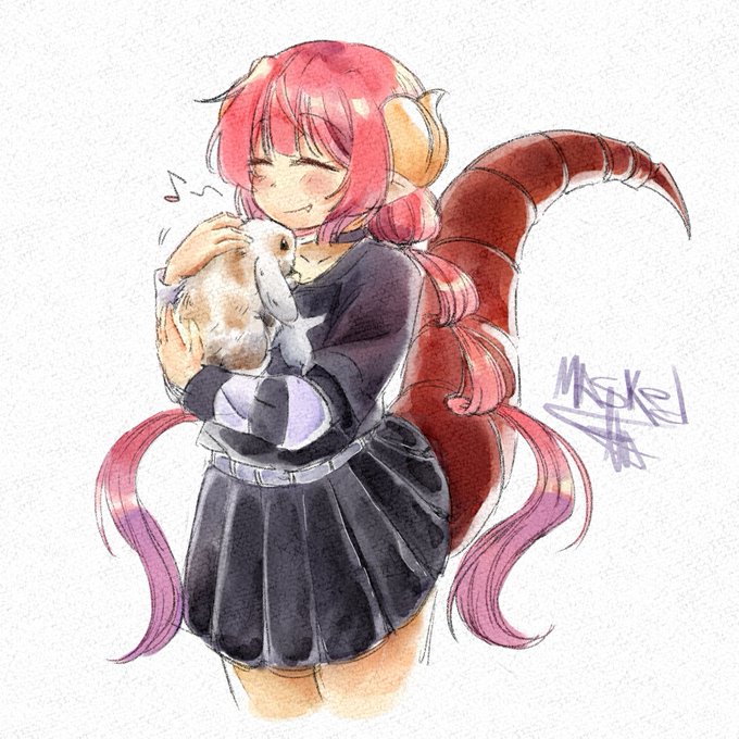 Daily ilulu 01✨ Ilulu with Bnuy ~❤️ Using Watercolor technique for the first time in CSP, i've always wanted to try it and i'm happy how the result came out :3 #Ilulu #イルル #小林さんちのメイドラゴン #digitaldrawing #watercolor #Clipstudiopaint #iluluism