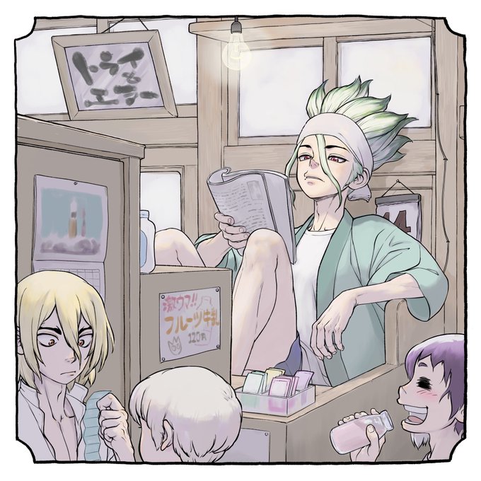 #絶対に被ってはいけないお仕事コスプレ干空ちゃん お題:銭湯の番頭 🌳がやってる銭湯をたまに手伝う🚀 主に経営面とかアドバイスしてるけど、🌳🍊デート中は番頭もやる。 ※続くスレッドに千ゲン龍羽要素あり