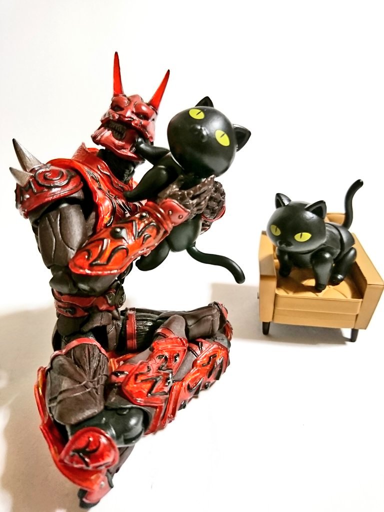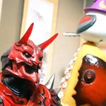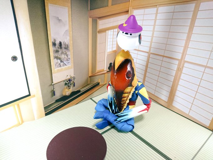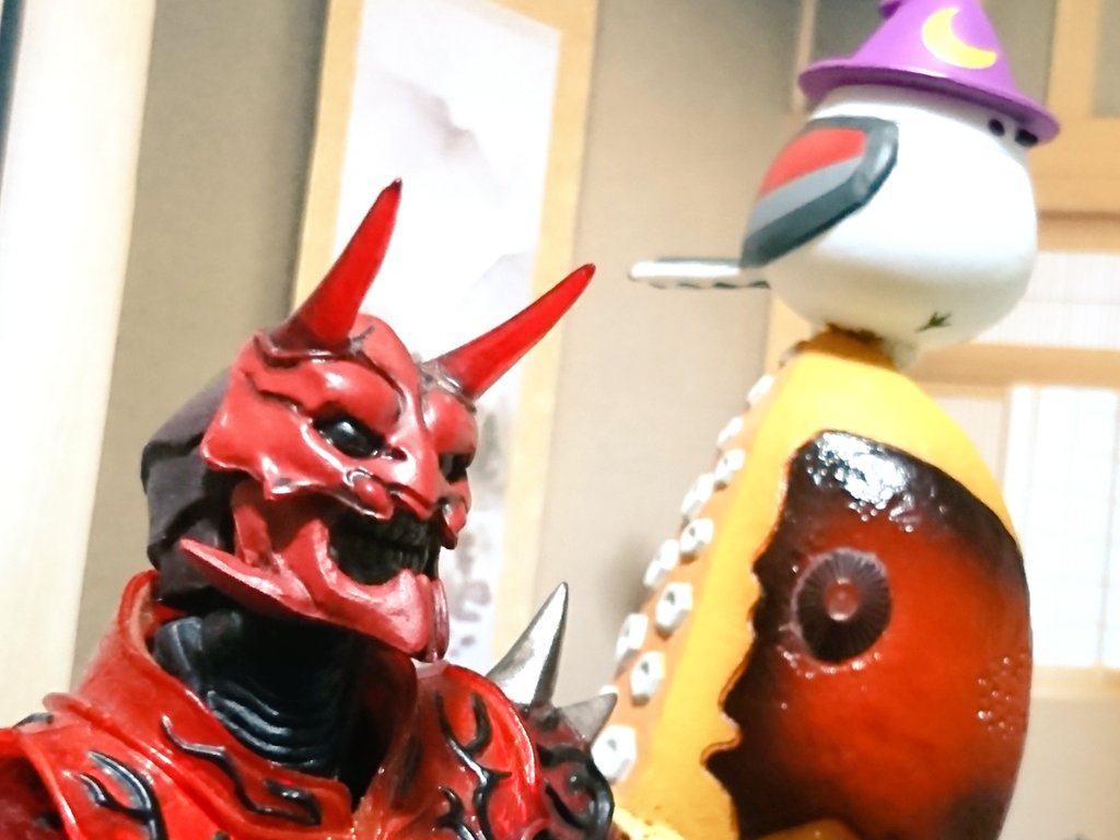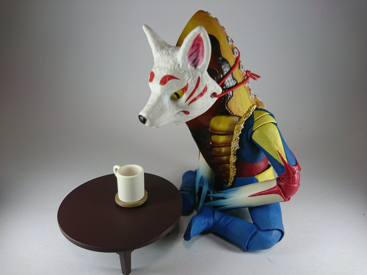 #夜のフィギュア撮影会 9/17 お題 『癒』 昨晩 過って(?)自慢のちゃぶ台でべリアル陛下をシバいてしまったメトロン星人 彼は罰としてしばらく【狐の面】を着けての生活を余儀なくされたのであった… …しかし!