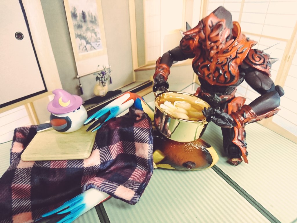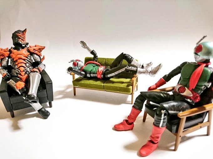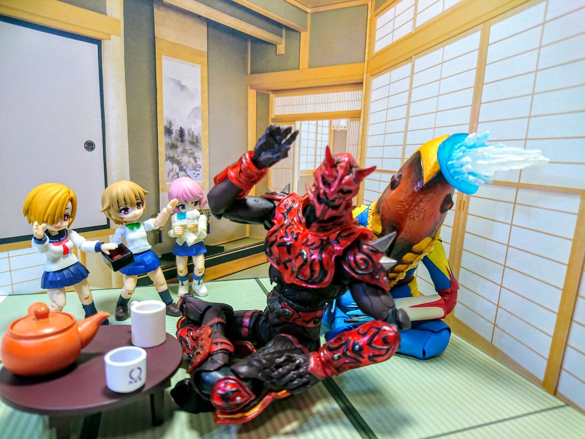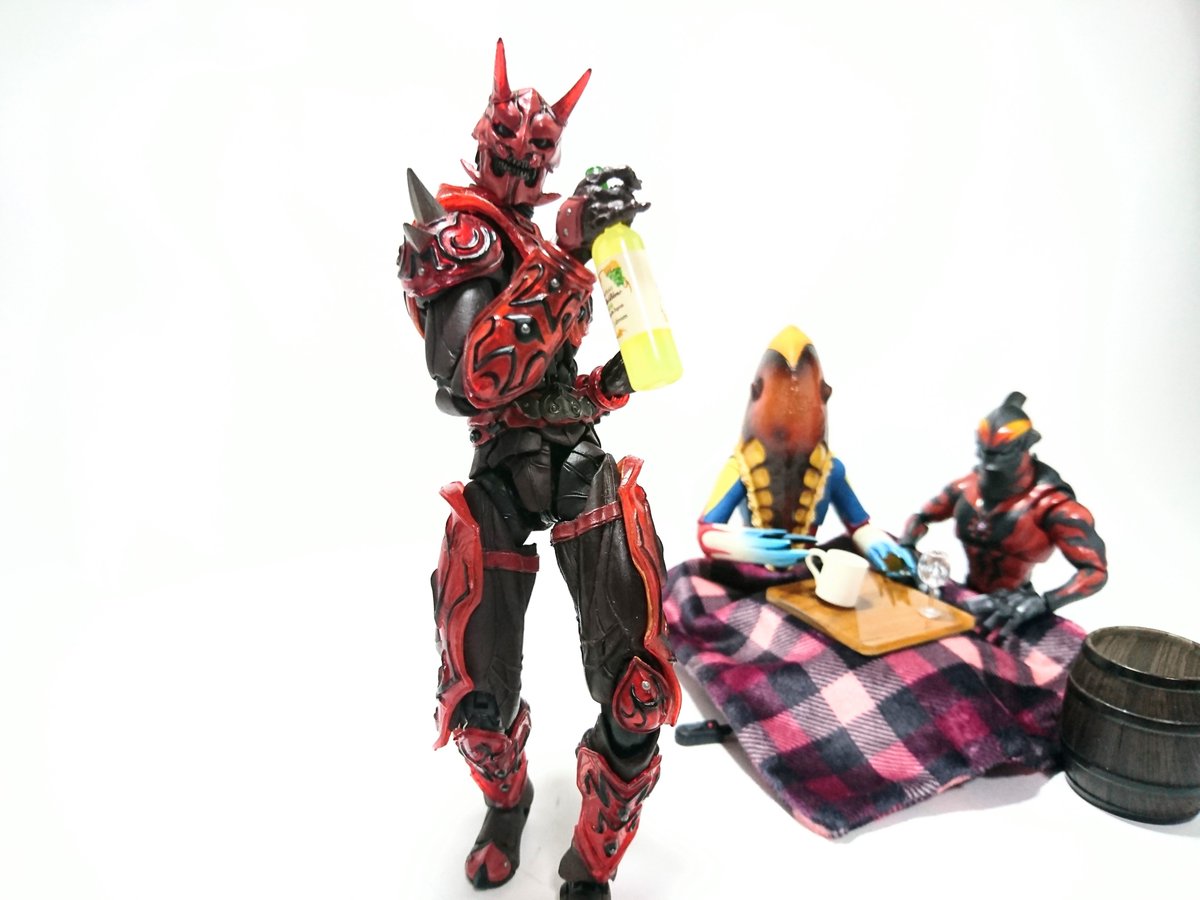 #夜のフィギュア撮影会 9/17 お題 『癒』 昨晩 過って(?)自慢のちゃぶ台でべリアル陛下をシバいてしまったメトロン星人 彼は罰としてしばらく【狐の面】を着けての生活を余儀なくされたのであった… …しかし!