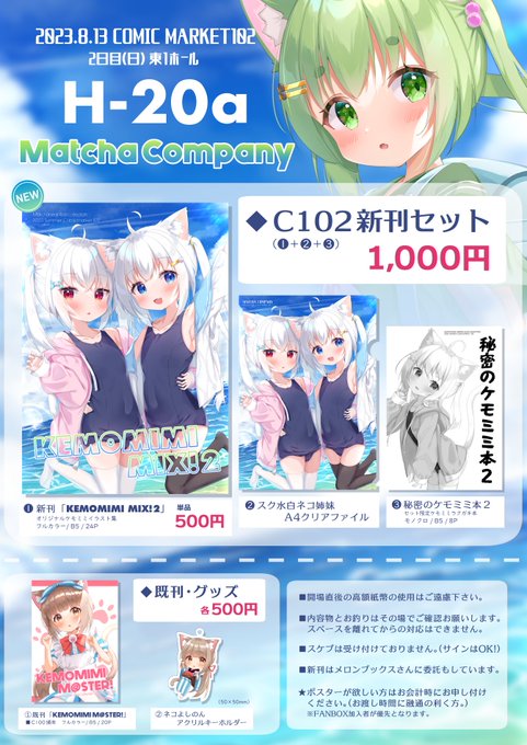 【🍈通販のお知らせ🍈】 C102新刊「KEMOMIMI MIX! 2」の予約が開始しました! 今回もネコちゃんとスク水盛りだくさんな一冊です!! 当日現地に来られない方など、是非チェックしてみてください!🐈✨ melonbooks.co.jp/detail/detail.…
