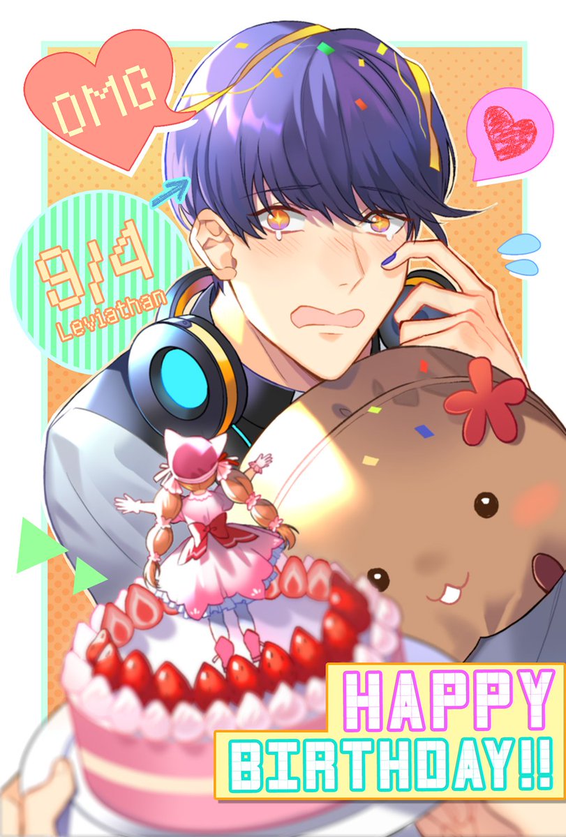 レヴィ誕生日おめでとう〜!🧡 怒らないといいけど、花ルリたんフィギュアを勝手にケーキの上にさしたこと🤗 #ObeyMe #ObeyMeLevi #ObeyMeBD #HappyBirthdayLeviathan #obeymeleviathan #おべいみー