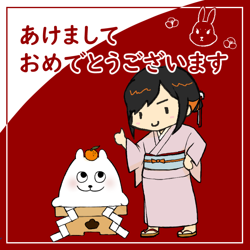 🎍2023年 あけましておめでとうございます!🎍 昨年はたいへんお世話になりました。 本年も、何卒よろしくお願い申し上げます。 みんなはお餅、たべた? ぼくはいっぱい食べちゃった!>< #お正月 #うさぎ年 #イラスト #年賀
